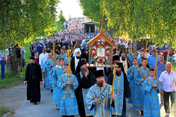 17 июня, в день Святого Духа и престольный праздник древнего скита, юбилейные торжества достигли вершины. По окончании Божественной Литургии состоялся многотысячный Крестный ход к новой колокольне и памятной часовне и освящение их.