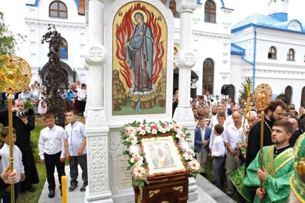 Торжества начались 9 июня с освящения нового Свято-Иверского храма обители. Его строительство началось еще в 1993 году. И вот наконец совершён чин великого освящения. Его и праздничную Литургию возглавил митрополит Тернопольский и Кременецкий Сергий в сослужении наместника Почаевской лавры митрополита Владимира и ректора одноимённой семинарии епископа Шумского Иова.