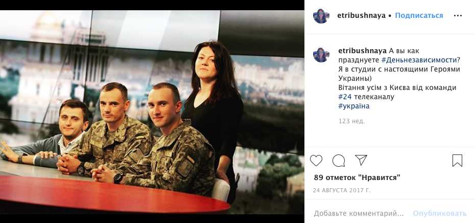 Здесь она в студии «24»-ки с «настоящими героями» – убийцами Донбасса.