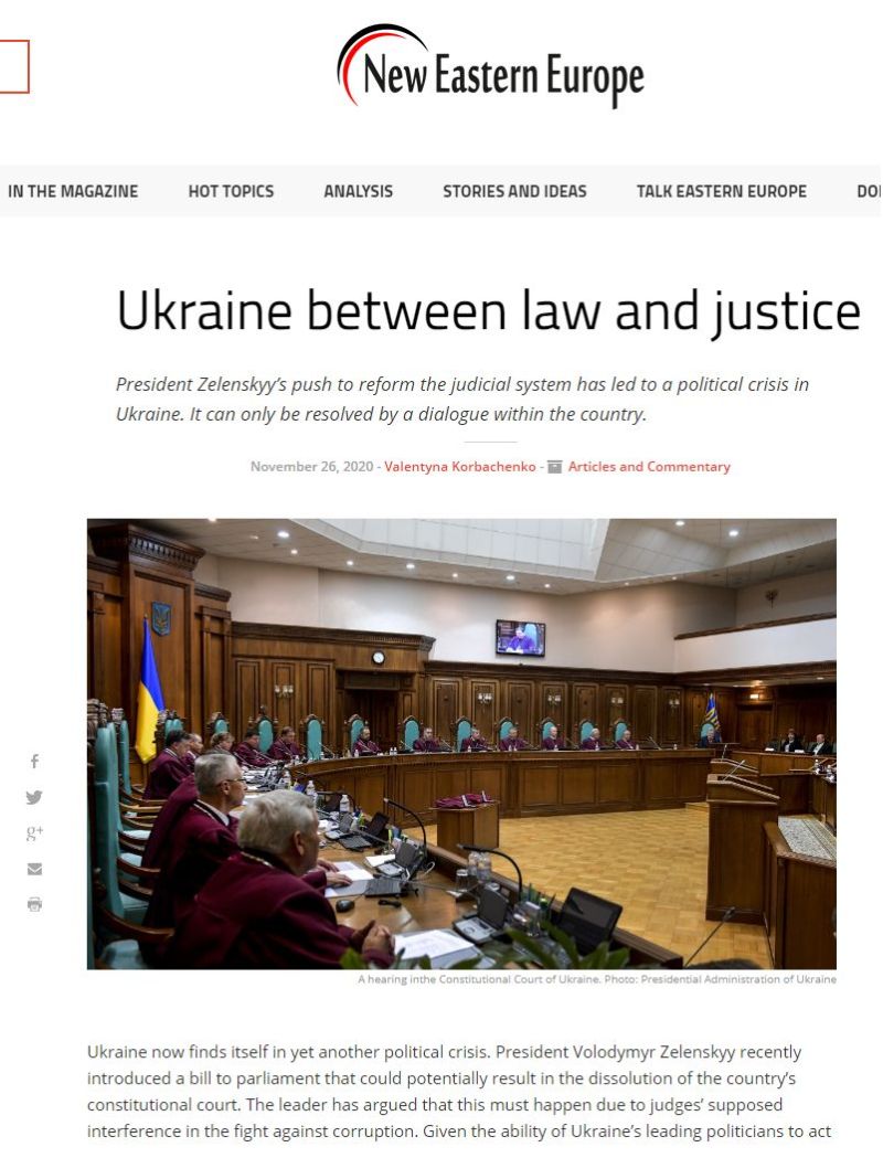 Критики и, главное, осмысления западными деятелями происходящего на постмайданной Украине сегодня как никогда много. На днях в польском издании New Eastern Europe опубликована статья украинского юриста Валентины Корбаченко «Украина между законом и справедливостью», посвящённая состоянию судебной системы в гетманате Зеленского.
