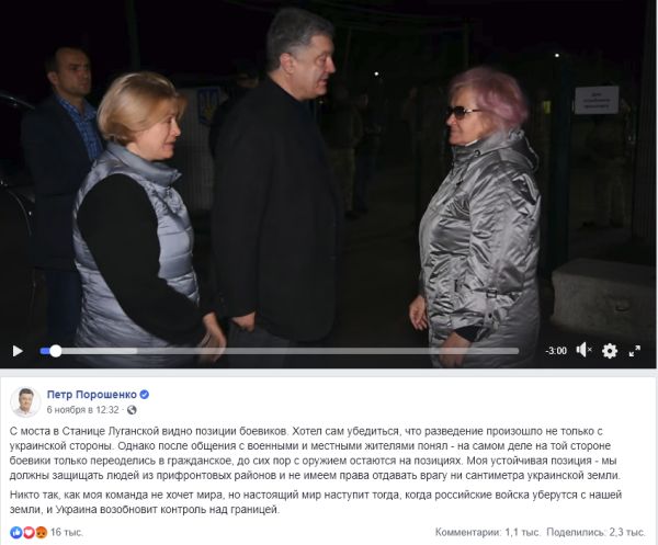 Бывший президент Порошенко не только выступает организатором дестабилизации, но даже не ленится участвовать в мелких провокациях. Например, с целью помешать разведению войск и обвинить Зеленского в сдаче интересов Украины, Порошенко поехал в Станицу Луганскую, после чего вполне прогнозированно заявил, что «с моста в Станице Луганской видно позиции боевиков. Хотел сам убедиться, что разведение произошло не только с украинской стороны. Однако после общения с военными и местными жителями понял — на самом деле на той стороне боевики только переоделись в гражданское и до сих пор с оружием остаются на позициях». Порошенко, наверное, считает подписчиков своей странички очень глупыми людьми, раз не стесняется писать такое. Неужели кто-то поверит, что сотрудники Народной милиции ЛНР будут нарочито демонстрировать оружие, да ещё так, чтобы его было видно с противоположной стороны, рискуя нарваться на международный скандал? Понятно, что заявление Порошенко лживо от начала до конца, его он придумал, наверное, ещё до того, как поехал на Луганщину. Да и поехал он туда только ради этого провокационного заявления.