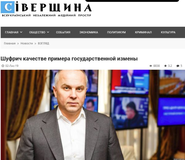 А вот какое заявление напечатала считающаяся вполне респектабельной газета «Сіверщина»: «Вчерашние заявления Нестора Шуфрича в эфире Савика Шустера должны стать предметом исследования СБУ и ГПУ на предмет наличия в них признаков государственной измены. Сначала он поправлял Сергея Наева (заместителя начальника Генштаба), который заявил, что на неподконтрольных территориях есть русские войска. Шуфрич назвал эти слова бездоказательными и ссылался на отчёты ОБСЕ. После обоснованных объяснений и ссылок на данные разведки нардеп из партии любителей Путина всё равно резюмировал, что доказательств наличия российских войск нет. Затем после исторической аналогии со Второй мировой, которую провёл Святослав Вакарчук, Шуфрич назвал эти сравнения неверными, потому что тогда была война между нациями, а сейчас внутренний конфликт, когда с обеих сторон украинцы. В эфире украинского телеканала председатель комитета по свободе слова украинского парламента повторял тезисы российской пропаганды. Если за такие заявления не наказывать, то о какой информационной безопасности и борьбе с российской пропагандой вообще может идти речь?» Таким образом, украинские националисты требуют ареста народного депутата только за то, что он в корректной форме высказал несогласие с их позицией.