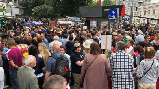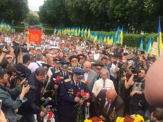 Колонна «Бессмертного полка», в которой находились нардепы Новинский и Шуфрич, двигалась от метро «Арсенальная» в направлении парка Вечной Славы. Нацисты пытались провоцировать участников, запевая гимн Украины, но их перекрикивали возгласами «Ура!» и «Слава великой Победе!».