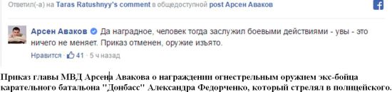 Министр внутренних дел Арсен Аваков требует арестовать экстремиста за стрельбу по полиции, в то время как сам же и подарил ему оружие, из которого тот стрелял. Пикантность делу придаёт то, что полицейский, получивший огнестрельное ранение, защищал суд, а суд отпускает экстремиста, устроившего стрельбу.