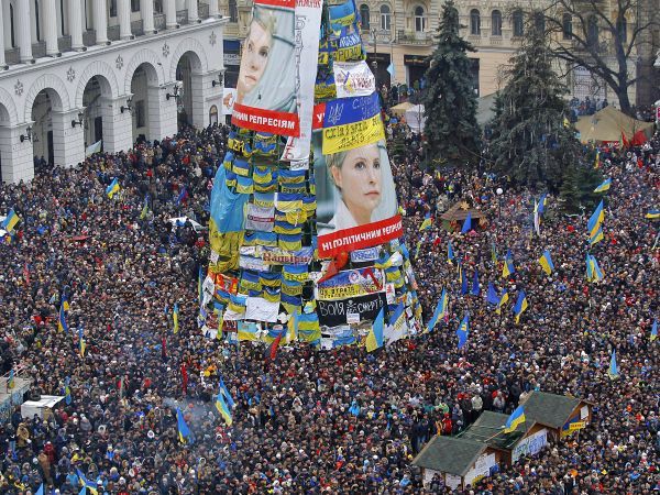 Портреты Тимошенко украшали ёлку на Евромайдане