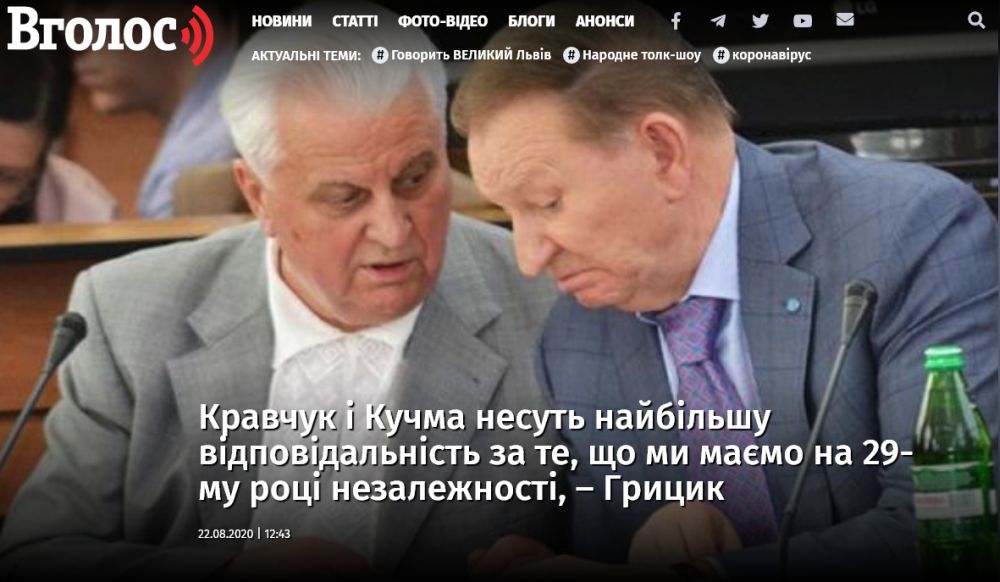 Аналогичное мнение о Кравчуке (а заодно и о его преемнике) размещено на сайте влиятельного среди националистов львовского информационного агентства «Вголос»: