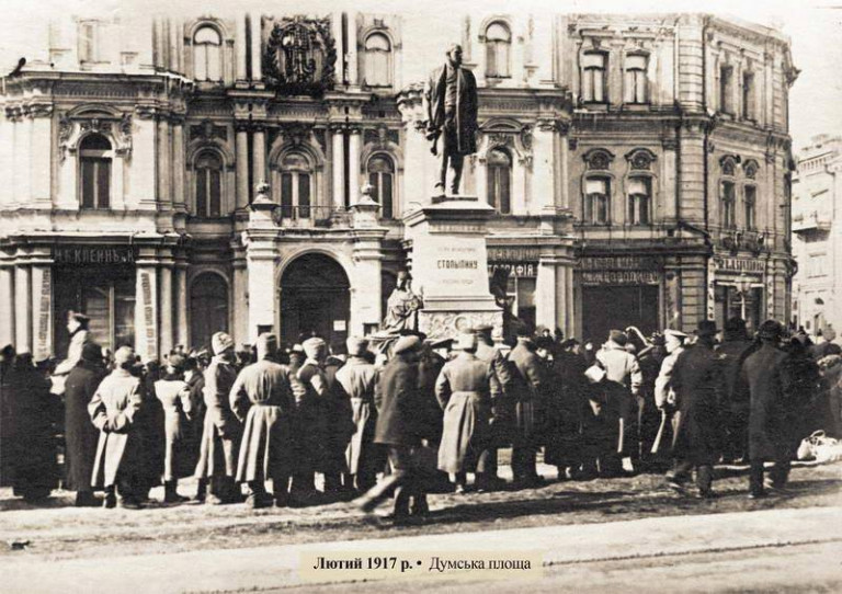 С получением известия о произошедшей в Петрограде революции в политической жизни Киева не изменилось фактически ничего, за исключением того, что несколько десятков человек из состава Общества украинских прогрессистов и УСДРП 17 марта (4 марта по ст. стилю) 1917 года взяли и самочинно объявили себя украинской властью. А именно – создали опереточный орган, громко названный Центральной радой.