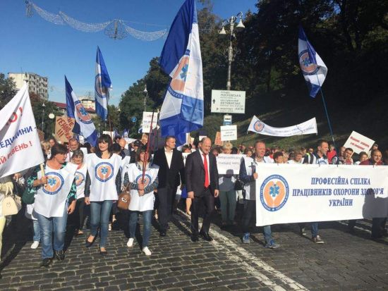 19 сентября, вместо обещанной Саакашвили революции, в Киеве состоялось шествие и митинг медицинских работников. Мероприятие было настолько массовым, что в центре столицы перекрыли несколько улиц, в результате чего образовались пробки. Профсоюзы анонсировали участие 7 тысяч человек со всех концов Украины. Сколько людей вышло на улицы, точно неизвестно, но было их много. Народный депутат Сергей Каплин, принимавший участие в акции, говорит, что в митинге участвовало около 3,5 тысяч человек. Он утверждает, что «это только начало». В планах – химики, шахтеры и металлурги.
