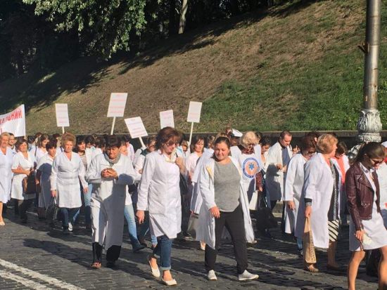 На акции был замечен бывший министр здравоохранения Олег Мусий, – он известен тем, что за год его руководства ведомством не было проведено ни одного тендера на закупку медикаментов. Сейчас Мусий требует отмены медицинской реформы, считая, что она уничтожает страну. Среди участников митинга также была замечена глава комитета по здравоохранению Верховной рады Ольга Богомолец. На своей странице в Facebook Богомолец много писала о том, как уничтожают украинское здравоохранение и чего требуют медики. Она пафосно замечала: «Очень горько наблюдать, как втаптывают в грязь людей, которые помогали раненым на Майдане, спасали жизни бойцов в зоне АТО, лечили наших детей и родителей». Действительно, медики выполняют свою работу, невзирая на политические симпатии. Далеко не все поддерживали майдан и гражданскую войну, развязанную киевским режимом. Но под раздачу теперь попали все, и не только медики.