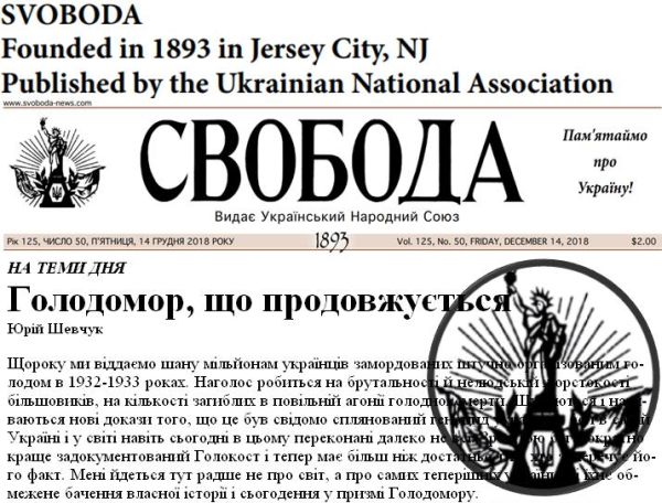 Что касается статьи, размещённой в «Свободе», то она о другом. Просто не верится, что это писалось всерьёз. Например, нынешнюю власть автор фактически обвиняет в русификации Украины! Это при том, что идёт колоссальное наступление на права русскоязычных граждан. «Особенно смертельная форма продолжения Голодомора, – пишет Шевчук, – это политика языковой шизофрении, последовательного и теперь закреплённого украинским законодательством институционального спаривания украинского языка с русским везде и всюду. Это исторически самая действенная форма уничтожения украинства в той мере, в какой язык является первым и определяющим признаком современной национальной идентичности. Это изобретение новейших постсоветских продолжателей Голодомора. Даже советы до неё не смогли додуматься». Что имеется в виду под закреплённым законодательно спариванием украинского и русского языка, неизвестно. Возможно то, что националистам не удалось вернуть Харьковское правописание. Новая, принятая в 2018-м орфография ненамного отличается от той, что была при УССР. А может быть, имеется в виду то, что в теле- и радиоэфире оставлена минимальная квота для продукта не на украинском языке.
