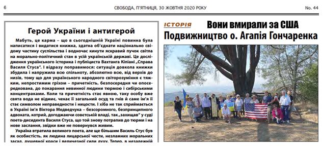 По результатам местных выборов, где партия «Оппозиционная платформа — За жизнь» показала хорошие результаты, газета украинских националистов США «Свобода» из номера в номер начала размещать провокационные материалы против оппозиции. Особенно досталось лидеру «Оппозиционной платформы — За жизнь» Виктору Медведчуку. Этого политического деятеля «Свобода» описывает с поистине поэтическим упоением, выставляя его как некоего «гения зла».