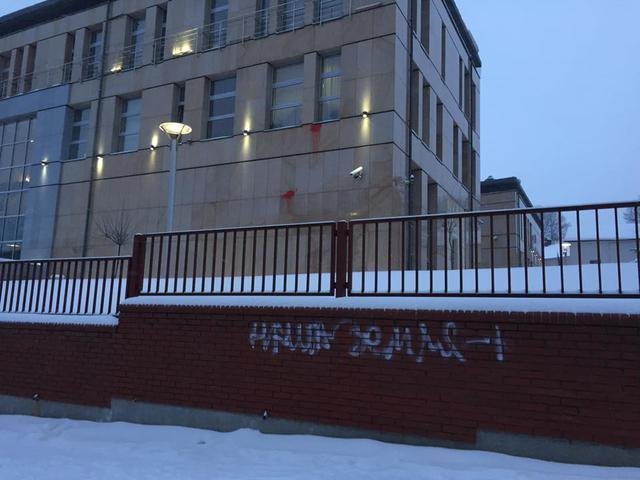 Забор генконсульства Польши во Львове. Полиция разыскивает злоумышленника, который написал на его здании «Наша земля»