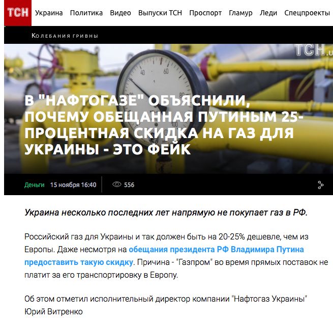 В сюжете «В "Нафтогазе" объяснили, почему обещанная Путиным 25-процентная скидка на газ для украины - это фейк» ТСН приводит слова исполнительного директора компании "Нафтогаз Украины" Ю. Витренко.