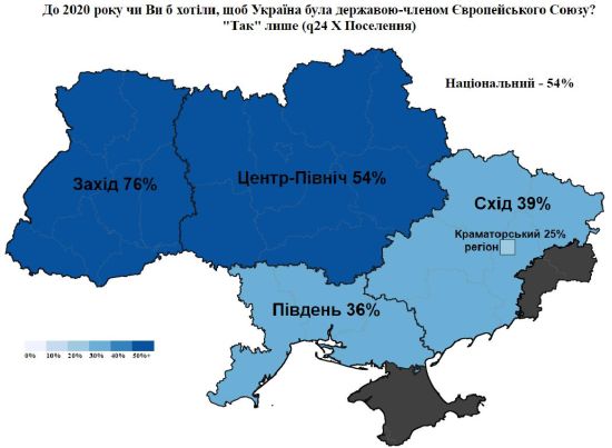 Видимо, янки были удивлены результатом, так как в «Краматорском регионе» в ЕС хотят 25%, т. е. еще меньше, чем на востоке Украины в среднем (рис.2).