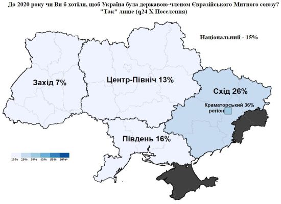 А «Краматорский регион» дал 36% голосов за то, чтобы Украина стала членом Евразийского экономического союза. Показатель опять-таки знаковый.