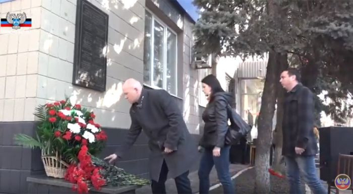 На фото. Дончане несут цветы к мемориальной доске, источник – Министерство информации ДНР