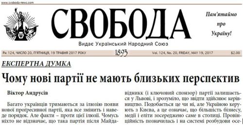 К тому же для властей предержащих Украины есть ещё одна опасность. В Соединённых Штатах недовольны нынешними правителями и настроены на замену их политиками, выращенными на американских грантах внутри грантоедских организаций. Например, газета украинской диаспоры в США «Свобода» настойчиво из номера в номер проводит мысль, что Пётр Порошенко, Юлия Тимошенко и даже Арсений Яценюк должны уйти.