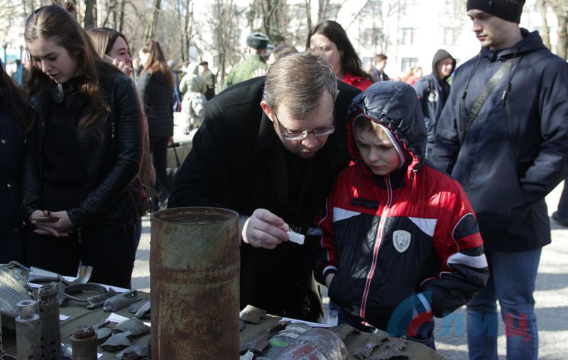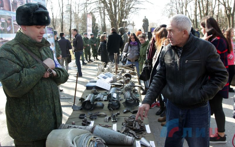 «Многие слышат канонаду, но, к счастью, не многие держали эти осколки в руках. Тем не менее, люди должны иметь такую возможность посмотреть, чем Украина убивает жителей Донбасса», – прокомментировал экспонаты, представленные на выставке, министр иностранных дел ЛНР Владислав Дейнего.