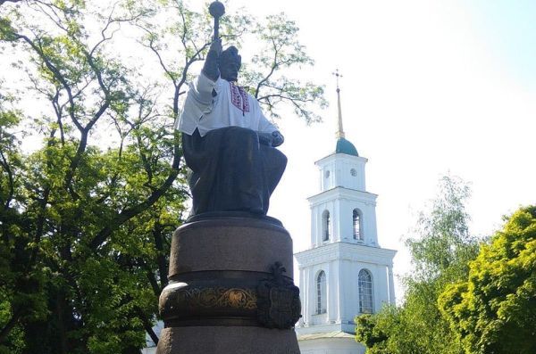 На Соборной площади Полтавы они «нарядили» в вышиванку на памятник гетману-иуде Ивану Мазепе. Идея, по словам Матвийчука, принадлежит приезжим львовянам-свободовцам.