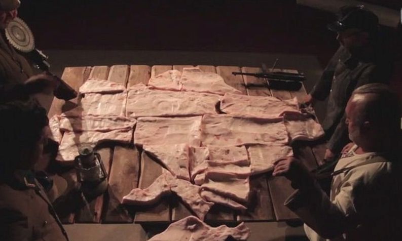 А чтобы москали скрипели зубами от зависти, участники мероприятия записали видеоролик: выложили из сала карту Украины и пришили к ней нитками Крым. Желая окончательно насолить «агрессору», к карте Украины прилепили и шмат сала, изображающий Кубань. «Где сало – там и Украина!» – заявили бандеровцы.