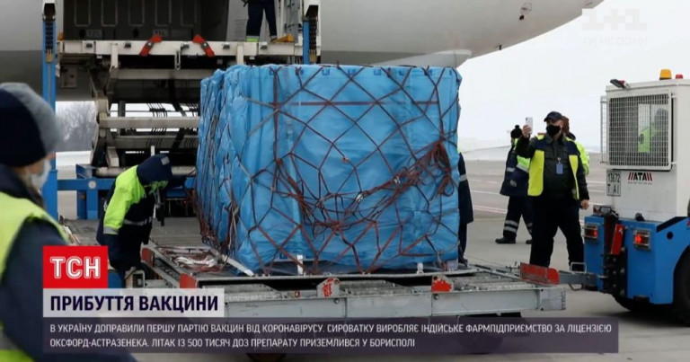 В аэропорту «Борисполь» 23 февраля сел самолёт с первой партией вакцины от коронавируса Covishield, изготовленной компанией Serum Institute of India. Накануне эта вакцина была официально зарегистрирована на Украине для экстренной профилактики COVID-19.