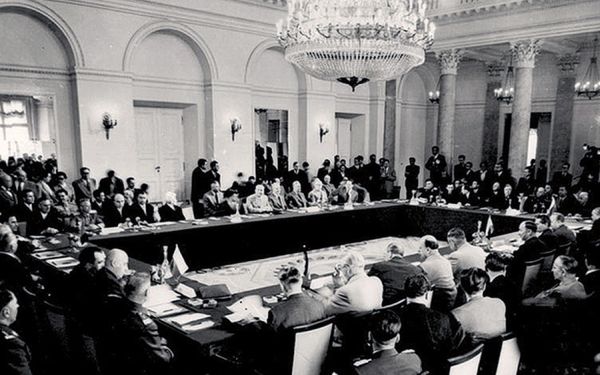 14 мая 1955 года в Варшаве закончилось трёхдневное совещание представителей восьми европейских социалистических стран по обеспечению мира и безопасности в Европе, начавшееся 11 мая. Его итогом стало заключение договора о дружбе, сотрудничестве и взаимной помощи (Варшавский договор). Блок НАТО, созданный шестью годами ранее, в 1949 году, получил мощный противовес, что обеспечило на 35 лет мир и порядок в Европе.