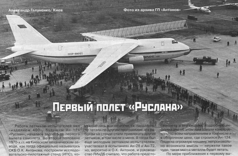 Первый полёт «Руслана» состоялся в декабре 1982 года. Это стало грандиозным, зрелищным событием и праздником авиации.