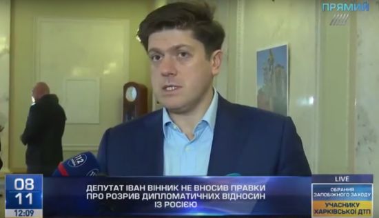 Очевидно Ваня Винник в детстве очень страдал от недостатка родительского внимания, и сверстники не хотели с ним дружить. В результате этого у взрослого Ивана Винника, ставшего народным депутатом от Блока Петра Порошенко и секретарём комитета Верховной рады по вопросам национальной безопасности и обороны, сформировался комплекс неполноценности. Ему очень хочется, чтобы о нём всё время говорили и упоминали его фамилию в СМИ. Так он начинает себя чувствовать значительным политиком. Именно ради этого он и внёс поправку в закон «Об особенностях государственной политики по обеспечению государственного суверенитета Украины над временно оккупированными территориями в Донецкой и Луганской областях» о разрыве дипломатических отношений с РФ. Услышав «Фу» от президента и ряда политиков, он тут же пошёл на попятную, и начал мямлить что-то невразумительное. Мол, его не так поняли. Но спустя несколько дней опять заявил в телеэфире, что Верховная рада примет его поправку в четверг.