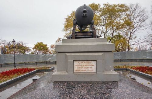 Сама по себе пушка не представляет угрозы, но историческая надпись на ней гласит: «Слава русскому оружию и доблестным сынам Отечества, защитившим Одессу!».
