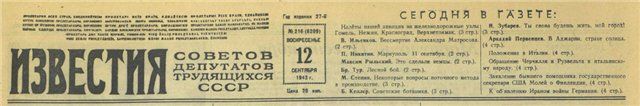 – писала газета «Известия» в номере от 12 сентября 1943 года.