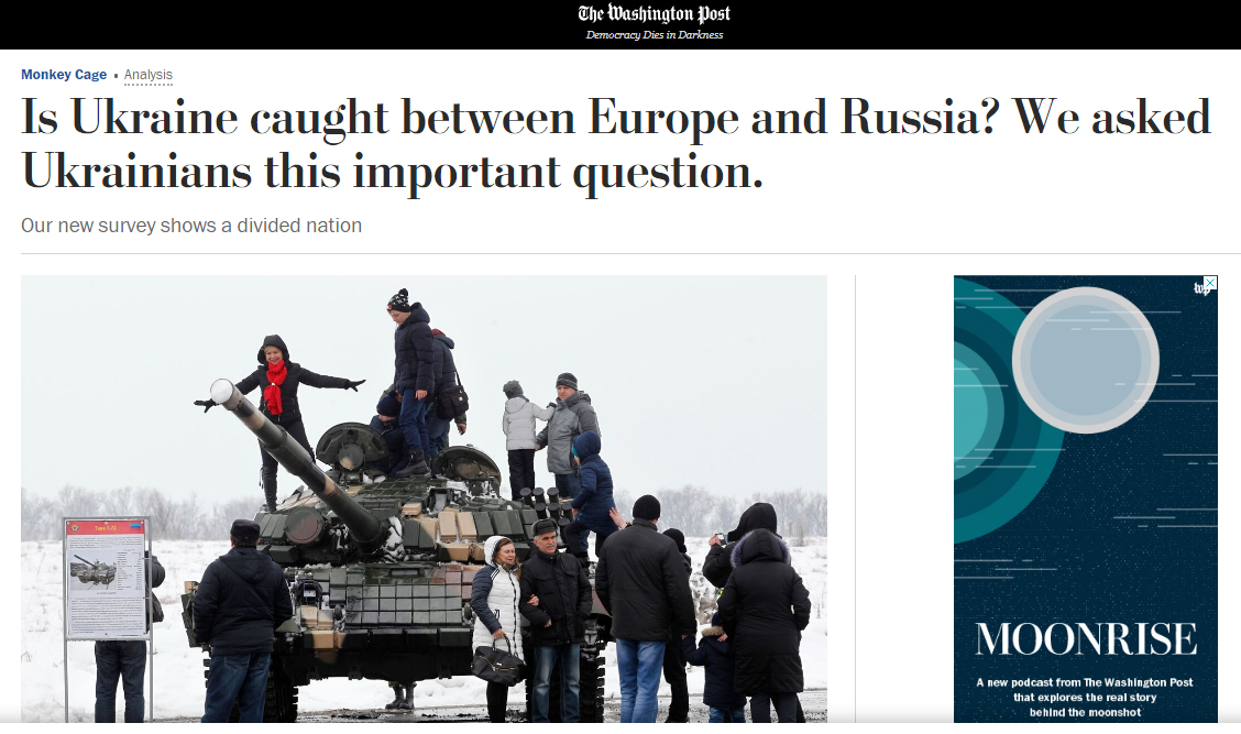 «Во время своего визита на Украину в конце января госсекретарь США Майк Помпео довольно красочно описал эту страну, назвав её «осью свободы». По его словам, эта страна «находится прямо на границе между Европой и Россией». Но он добавил, что Украина «прочно прикреплена к Западу». Где же находится Украина на геополитической карте? Является ли она промежуточной страной, застрявшей между Европой и Россией, или Украина – это часть Запада? Мы задали этот важный вопрос самим украинцам в рамках нашего репрезентативного опроса, проводившегося на Украине в декабре 2019 года», – пишет одна из самых известных американских газет The Washington Post.