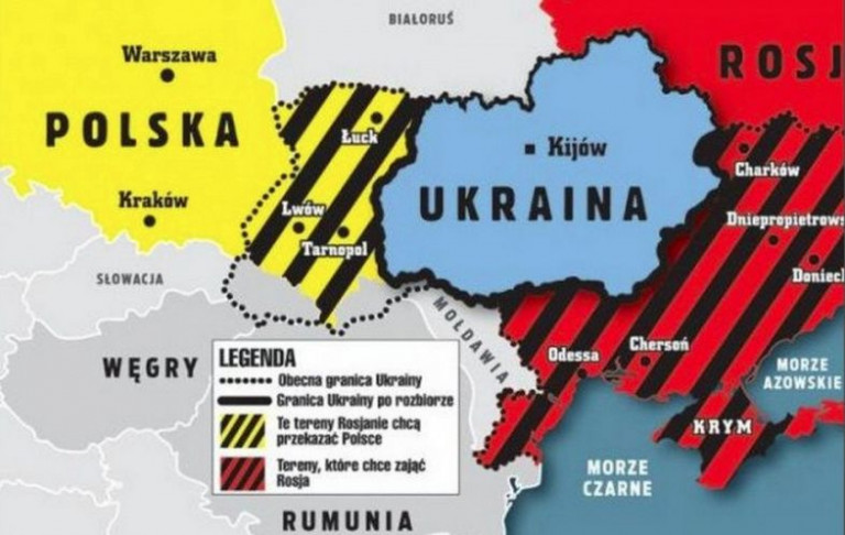 Ну а поляки тем временем упражняются в изображениях будущей Украины, предполагая, что рано или поздно западные земли отойдут Польше, юго-восток – России, а Украина – та, в которой не останется разногласий, – продолжит своё существование, лишившись двух третей территорий. Возможно, это и есть способ преодоления цивилизационного раскола в стране, по мнению польских СМИ.