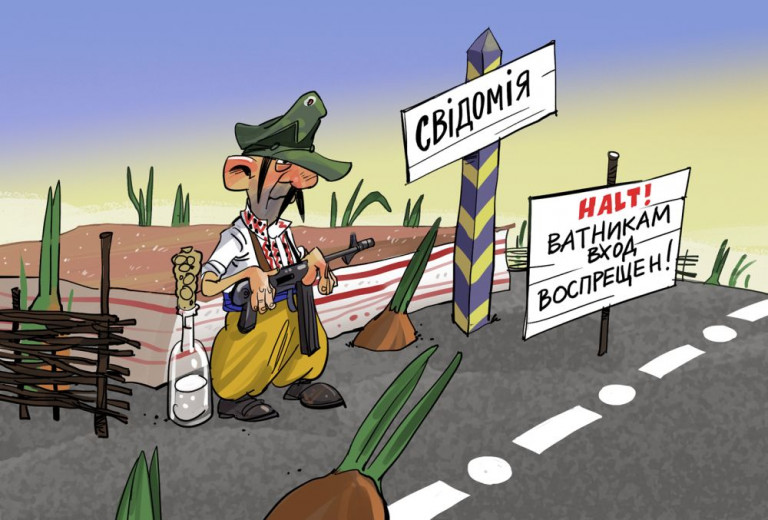 В окрестностях Киева некие дельцы возводят коттеджный посёлок, который, как следует из рекламы, предназначается только для «истинных украинцев». Застройщики зазывают жить «в кругу единомышленников» и исключают соседство с «ватой». Впрочем, «вата» может присутствовать на участках, но только в качестве рабов.