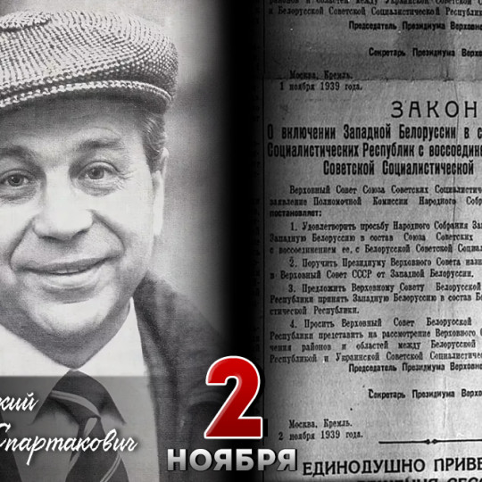 2.11.2025 2 НОЯБРЯ – ДЕНЬ В НАШЕЙ ИСТОРИИ Соб.корр. 2 ноября 1935 года родился поэт-песенник Михаил Спартакович Пляцковский, а в 1939 году Верховный Совет СССР принял закон «О включении Западной Белоруссии в состав Белорусской ССР». Исторические даты