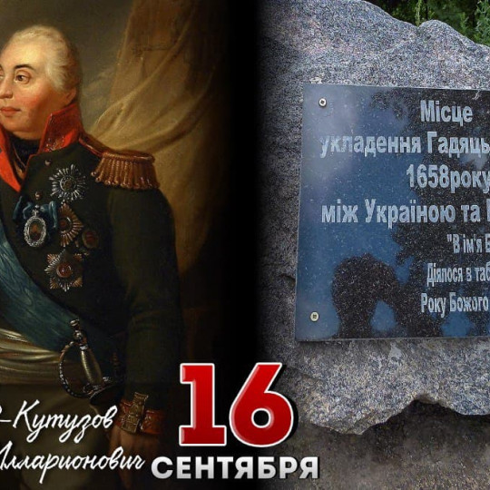 16.09.2025 16 СЕНТЯБРЯ – ДЕНЬ В НАШЕЙ ИСТОРИИ Соб.корр. 16 сентября 1658 г. гетман Иван Выговский заключил с Польшей Гадячский трактат, а в 1745 г. родился полководец, генерал-фельдмаршал Михаил Илларионович Голенищев-Кутузов. Исторические даты