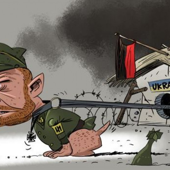 И пусть царит «майдана племя»,/ Стирая даты, имена./ Но будет и другое время –/ Себя узнает вновь страна./ Тогда очнувшемуся брату/ Россия память возвратит,/ И вспомнят Днепр и Карпаты,/ Как общий враг наш был разбит./ Хотя и ныне, среди бреда,/ В Украйне жив ещё народ,/ И, помня славную Победу,/ Вятровичей подальше шлёт.