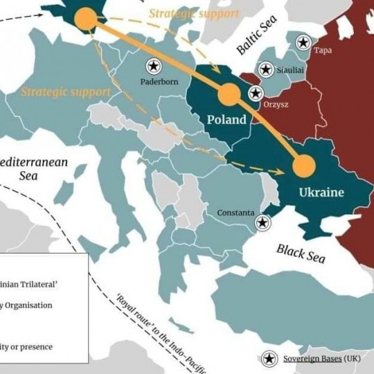 26.01.2022 Endless war и Тройственный союз Лондон – Варшава – Киев Валентин ЛЕСНИК На дворе 2022 год, а геополитические аппетиты Великобритании всё те же. Как и 100 – 150 лет назад она хочет перекрыть Евразии выход к морям, чтобы отгородить её от Мирового океана. Украина-Великобритания Тройственный Союз