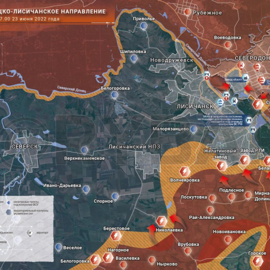 17.06.2022 Битва за Северодонецк: ситуация на 17 июня КОРОТКО О ГЛАВНОМ ВС РФ продолжают сжимать кольцо окружения вокруг промзоны на юго-западе Северодонецка. Заняты ранее оставленные ВСУ жилые массивы на южной окраине города. Новости СВО