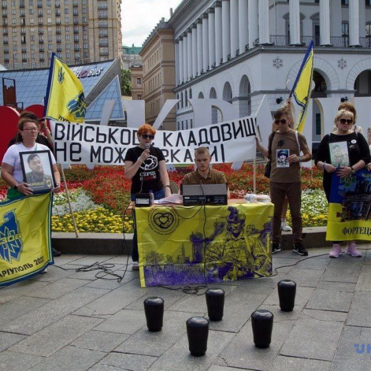 3.07.2023 На Украине родственники «Азова»* требуют больше кладбищ Соб.корр. В Киеве прошёл митинг с требованием новых кладбищ, но требований остановить войну нет. Потери ВСУ