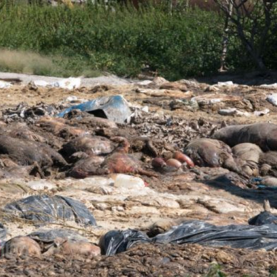Как только ситуация с вывозом мусора из Львова стала понемногу разрешаться, в украинских СМИ появилась шокирующая информация о том, что во Львовской, Тернопольской и Волынской областях образовались огромные свалки останков животных. Ещё в феврале 2017 года такой стихийный скотомогильник обнаружили возле села Боянец в полсотне километров от Львова. Здесь горы костей, копыт, шкур и прочих останков и даже целые туши мёртвых животных, занимающие почти три гектара земли. Останки сюда свозят жители близлежащих сёл, выращивающие скот на мясо. Местный житель рассказывает: «Отходы переработки животноводческой продукции, они должны куда-то девать, до того они вывозили на Жовковский филиал ДТ «Укрветзавод». Ну, так как там надо платить за переработку и утилизацию животных остатков, они свозят их сюда на данный период и экономят средства».