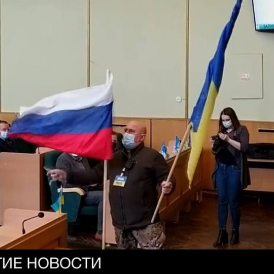 В понедельник, 12 апреля 2021 года, в Славянске проходила очередная сессия городского совета, во время которой в зал внесли российский триколор. Депутаты встретили флаг России аплодисментами, хотя цель у акции была совсем другая, как уверяет её инициатор. В этот день семь лет назад в Славянске началось формирование ополчения.