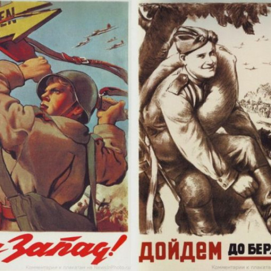В витринах чрезвычайно популярных в то время «Окон ТАСС» появился цветной плакат с порядковым номером 1274, озаглавленный «Медали победителей». На нём художник М. Соловьёв воспроизвёл аверсы новых медалей с орденскими лентами колонок, расположив их вокруг рисунка победной танковой колонны, а поэт М. Машистов добавил стихи: «Медали эти – символ славы – твою, герой, украсят грудь…»