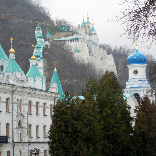 Небольшой городок за свою историю несколько раз менял имя. Он был и Славяногорском (в советское время), и селением Банным — в честь купален, возведенных на берегу Северского Донца по распоряжению князя Григория Потемкина в конце XVIII в. Сами же горы над Донцом назывались Святыми, видимо, с тех самых пор, когда здесь, в сыром чреве ослепительно белой меловой скалы, выкопали себе кельи первые иноки. … Первые документальные упоминания о Святогорском монастыре встречаются в Московских летописях XVI века. … Сегодня в Святогорскую лавру можно приехать и в качестве паломника, и как обычному экскурсанту. Впрочем, к концу экскурсии и обычный турист неизбежно превратится в паломника: святогорская благодать не отпускает…
