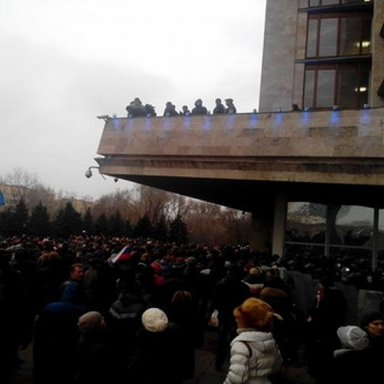 Между тем убеленные сединами люди говорят, что нужно сделать все, чтобы не дошло до силовой развязки конфликта, что, если на донецкой земле прольется кровь, этого никто не простит и тогда против власти открыто пойдут миллионы. ...А. Яценюк, представлявший 11 апреля киевскую власть на совещании в Донецке, подчеркнул, что он «против силовых сценариев» решения конфликта, однако «всему есть предел». В то же время требования протестующих, видимо, его не интересовали, пойти на диалог с активистами народного протеста у него не хватило смелости и политической воли. Вечером в Донецк приехал кандидат в президенты Украины, народный депутат Олег Царев. На пресс-конференции он заявил, что готов возглавить «Юго-восточное движение за федерализацию».